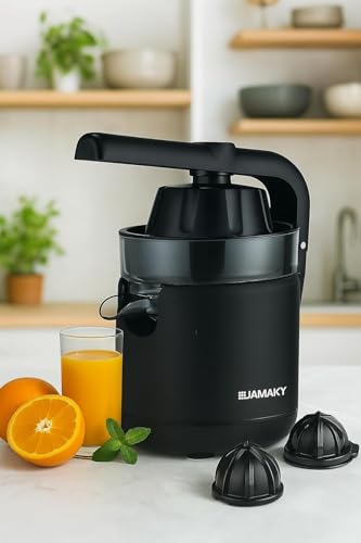 Generic - JAMAKY عصارة حمضيات كهربائية، 200 واط، سعة 200 مل، هيكل أسود، موديل JMK4019، مع محرك نحاس نقي، مخروط عصر مزدوج، سهلة التنظيف