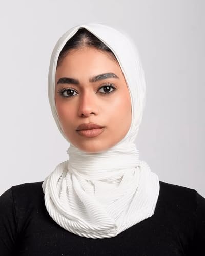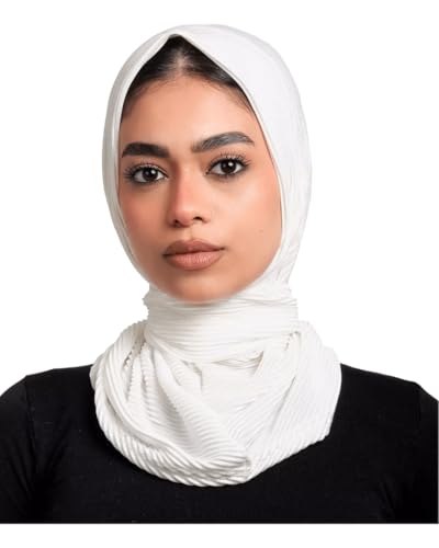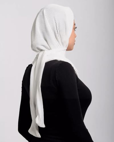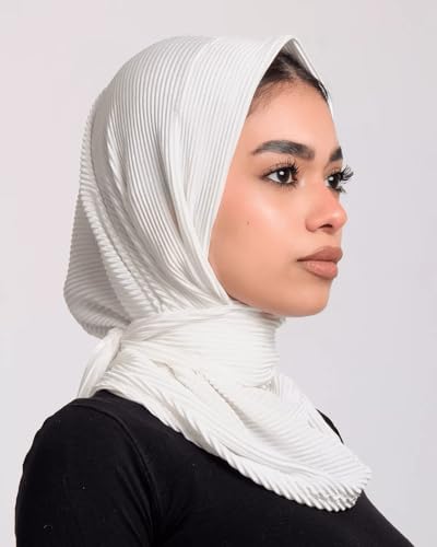 JAMILA جميلة - Premium Pleated Hijab Scarf, White Crinkled Texture, Elegant Muslim Head Covering, Soft Fabric, Modern Islamic Wear