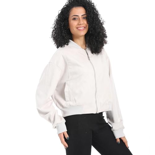 JAMILA - JAMILA Womens Women's suede zipper T-shirt - Beige Women's suede zipper T-shirt
