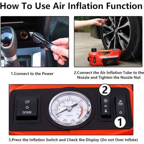 - [ Multiple Uses ] : Ideal for most vehicles under 5 ton, sedan,SUV, MPV,truck etc. It is an essential helper whether in your home garage, long distance travel, car repair shop, farm or halfway emergency. Built-in LED light and warning lights. bright enough to illuminate your working environment at night