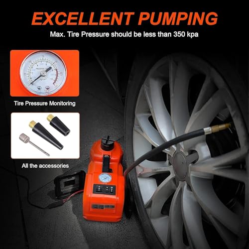- [ Easy Lnflating ] : With a tire inflator pump, it can provide 35 L/min air flow rate,has 4 units,KPA, PSI, BAR, KG/CM2. Moreover, features the ability to preset tire pressure, will auto shut off once reaching the preset pressure, no need to worry about over inflating