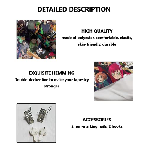 - 🔔 استخدام متعدد الأغراض: يمكن استخدام هذا البساط في الأماكن المغلقة والمفتوحة والداخلية مثل ديكور الحائط والبطانيات وغطاء السرير وغطاء الأريكة ومفرش الطاولة وغطاء الأثاث والستائر وتزيين السقف وما إلى ذلك؛ في الهواء الطلق مثل ملاءات النزهة ومنشفة الشاطئ والشالات والأوشحة وما إلى ذلك. يمكن أن يكون بساط المانجا هذا أيضًا هدايا مثالية لعائلتك وأصدقائك في أعياد الميلاد وعيد التخرج ويوم الزفاف والهالوين والكريسماس.