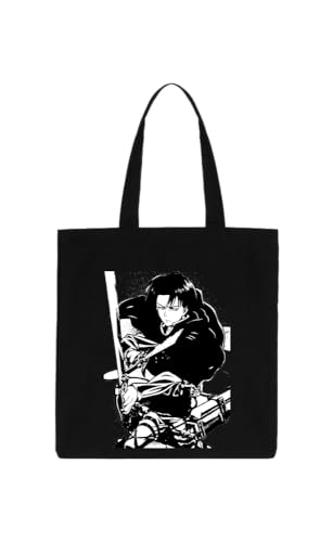 Generic - Japanese Anime AOT wings of freedom SHINGEKI NO attack on eren mikasa levi black tote bag 34 حقيبة يد كبيرة توت أسود