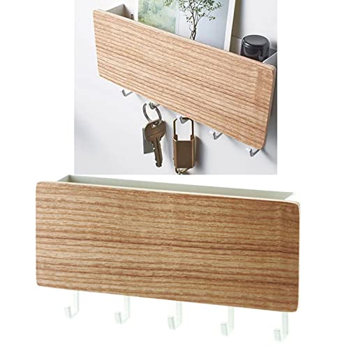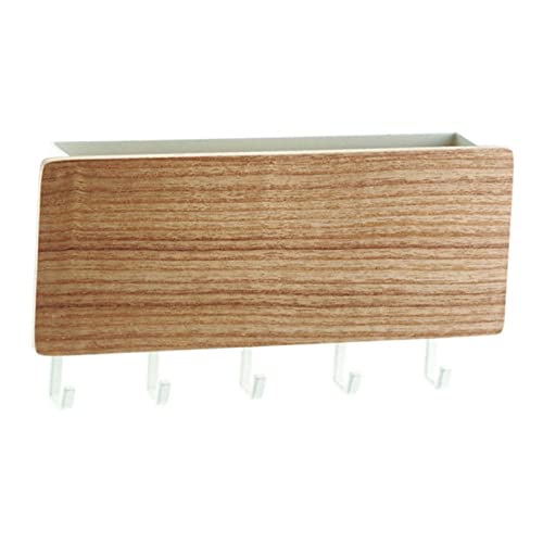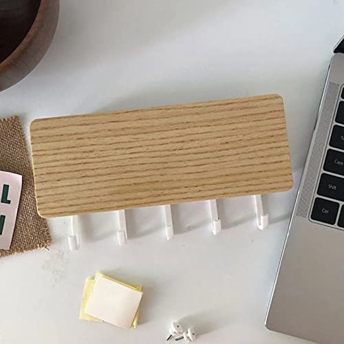 Yosoo - Japanese Wood Wall Mounted Key Holder with 5 Hooks Multifunction Key Hanger for Home (Original Wood Color)