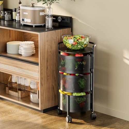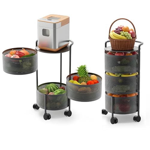- ✪【High Load-bearing】This rotable storage shelf is made of top quality carbon steel , very durable and sturdy . We have 3 models to choose ( 3-Tier, 4-Tier and 5-Tier )
