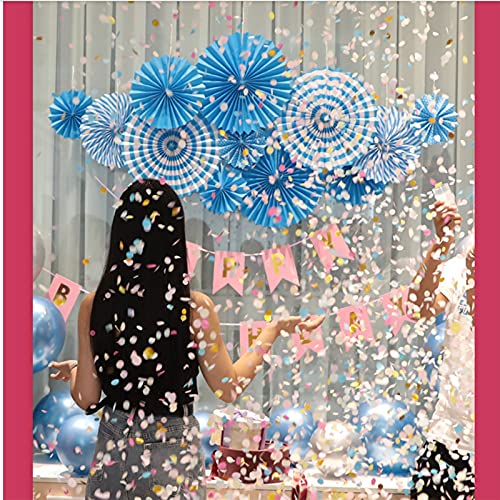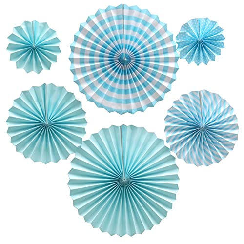 Jarcgoer - Paper Fan Flower,6pcs/Set Paper Fans Set Hanging Pinwheels Fan DIY Paper Craft for Wedding Birthday Christmas Party Decoration Hanging Paper Fan Flower Decoration (Light Blue)