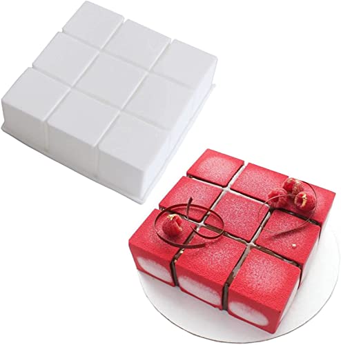 JasCherry - Silicone Mousse Cake Mould, 9 Gongge Square Shaped Non-Stick Cake Baking Mold, Soap Mould, Muffin Tray, Cupcake Moulds, Ideal for Cake Candy Chocolate Cupcake Jelly Soap
