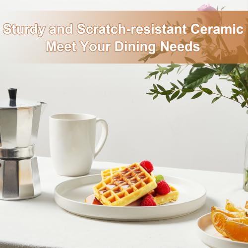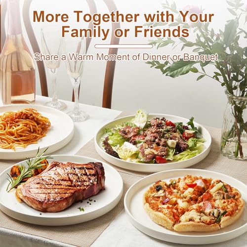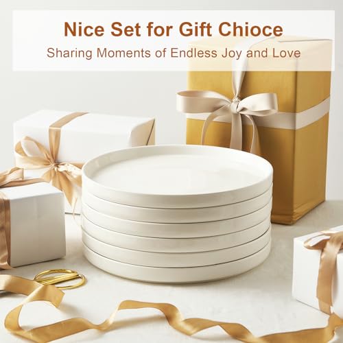 Jassceram - اطباق عشاء عصرية مقاس 10.5 انش من جاسسيرام للعشاء العائلي والمطعم - امنة للاستخدام في الميكروويف والفرن وغسالة الصحون مقاومة للخدش وخالية الرصاص تصميم عالي الحواف ابيض عدد القطع: 6 بورسلين