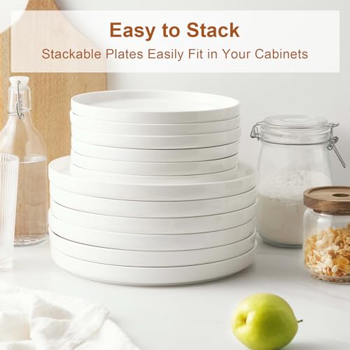 - سهلة التنظيف والتكديس - أطباق العشاء البيضاء الخاصة بنا قابلة للتكديس ولا تشغل مساحة كبيرة في خزانتك. السطح الأملس يجعل من الصعب بقاء البقع، ومن السهل غسله في الغسالة وغسله يدويًا..