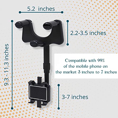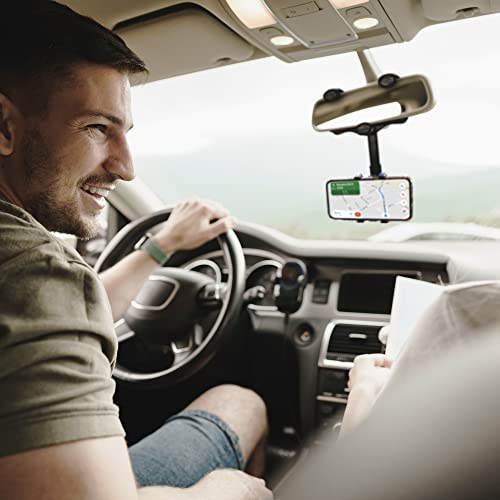JaWaSto - 360°Rear View Mirror Phone Holder -Rotatable and Retractable Car Phone Holder, Easy to Install and Remove this Multifunctional Rearview Mirror Phone Holder Adjustable for all Mobiles and Cars