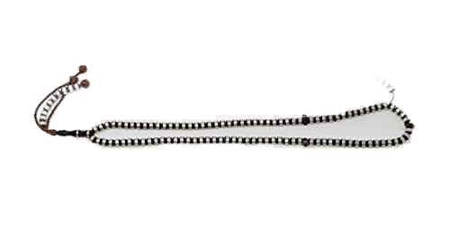 JAZZEEL - سبحة من خشب الكوك مكونة من 100 خرزة مرصعة بالفضة من جازيل - مسبحة كوكا كاملة الطول تتميز بتفاصيل فضية معقدة لتجربة صلاة إسلامية فاخرة وأنيقة
