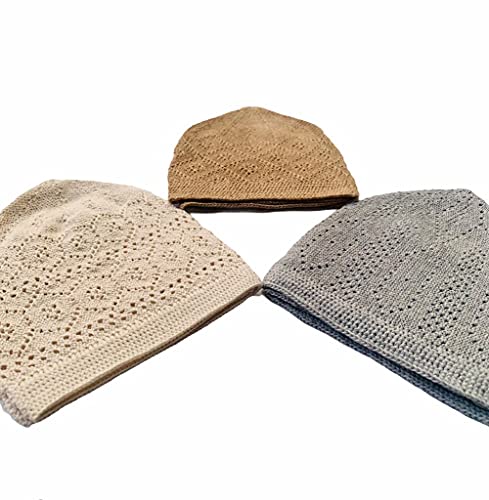 JAZZEEL - JAZZEEL 3-Color Set of Muslim Skull Caps, A Collection of Hats, Perfect for Prayer, Featuring a Traditional Crocheted Takke Topi Design for Men's Islamic Cap Wear - Multicolor