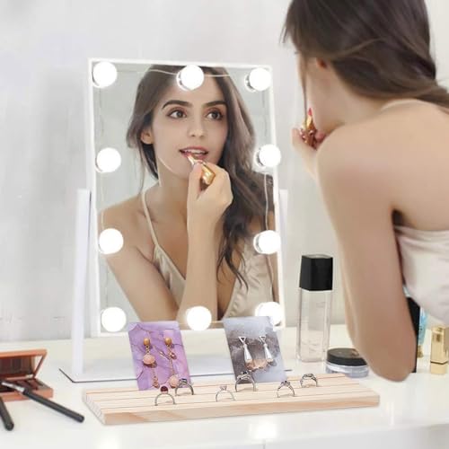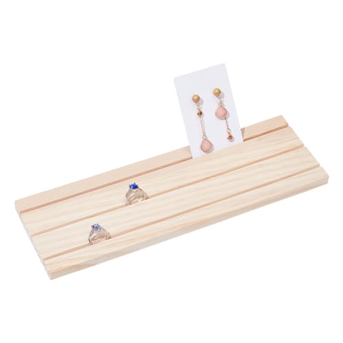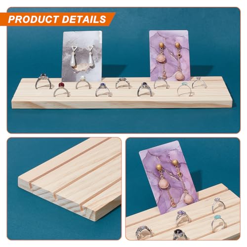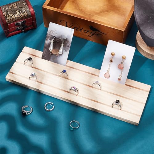 JAZZEEL - حامل عرض اقراط خشبي بـ3 فتحات من جازيل، حامل بطاقات 30 × 9.5 × 1 سم مع مسطرة، منظم رف شبكي احترافي للخواتم والاقراط والبطاقات والصور وديكورات المنزل، ابيض نافاجو