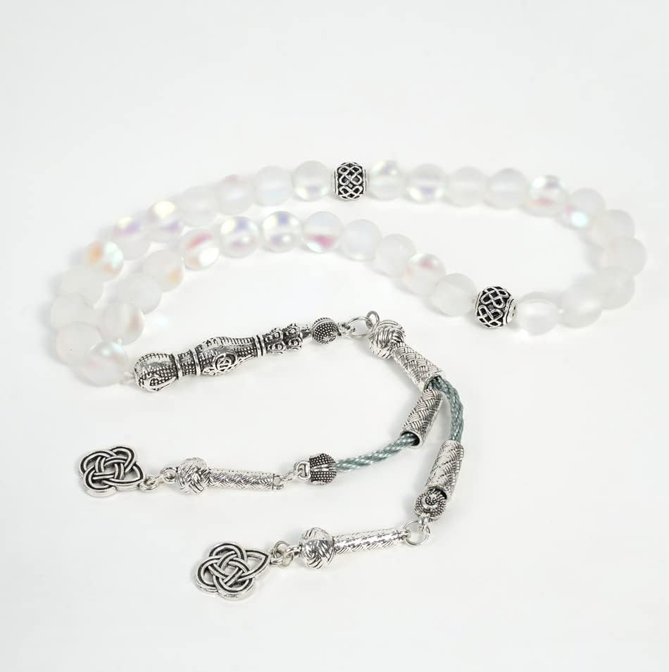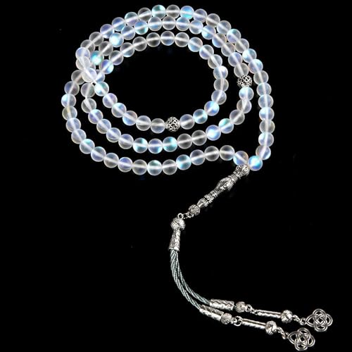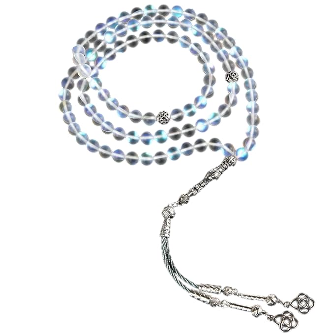 JAZZEEL - سبحة كريستال نمساوية من 33 خرزة من زد ام اتش كيه كيه - سبحة اسلامية شفافة ملونة مقاس 8 ملم مع شرابة معدنية، هدية لامعة وأنيقة لعيد الفطر