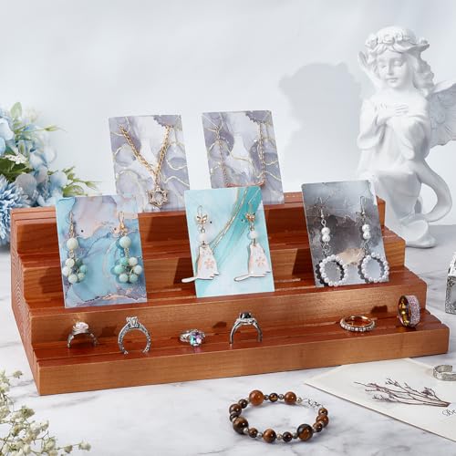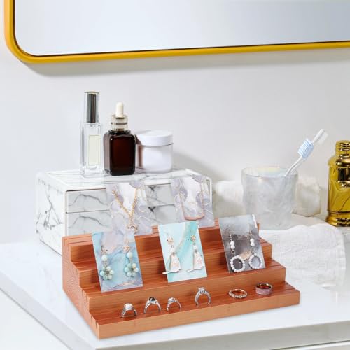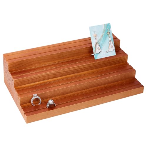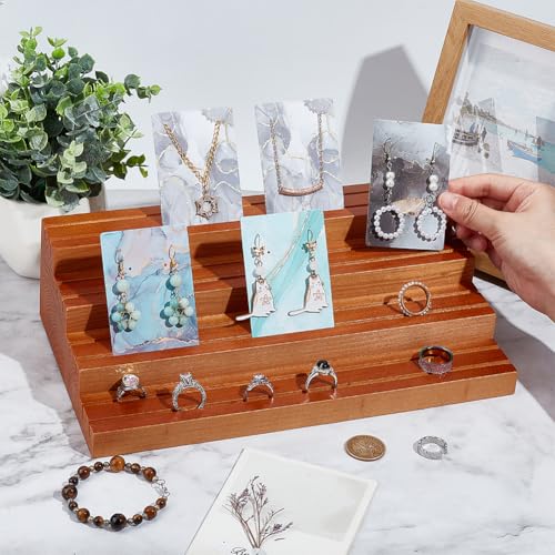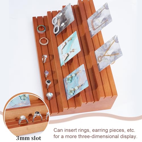 JAZZEEL - JAZZEEL 4-Tier Wood Earring Display Stand, 16.8x29.7x7.9 cm Slotted Card Holder, Professional Retail Jewelry Showcase Rack for Showing Earrings Rings & Photos, Peru Color Finish