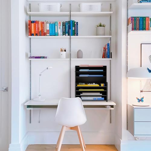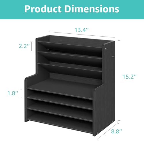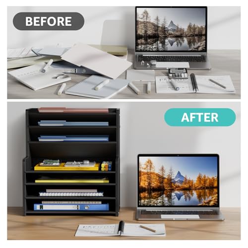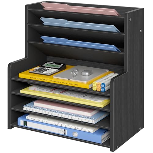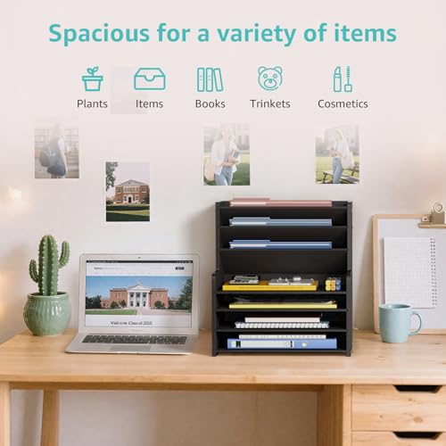 JAZZEEL - JAZZEEL 7-Tier Wood Office Desk Organizer, Tall Desktop Storage Shelf for Stationary and Files, Compact Workspace Solution and Paper Tray Sorter for Home and Office (Black)