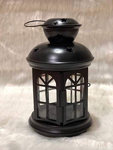 JAZZEEL - JAZZEEL A 20 cm Metal Ramadan Lantern for a Classic and Festive Holiday Decor - A Durable and Timeless Fanoos for Creating a Warm and Traditional Atmosphere - 20 cm - Black