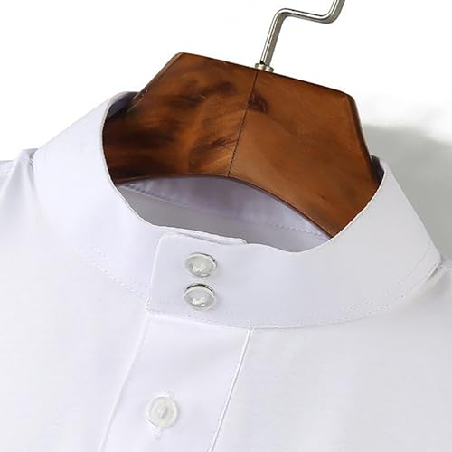JAZZEEL - ثوب اسلامي ابيض للرجال من جازيل، قفطان ناعم باكمام طويلة - ملابس صلاة اسلامية ورداء دبي بجيوب وياقة قائمة - ابيض