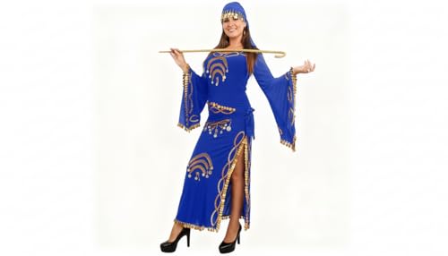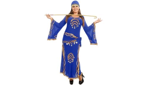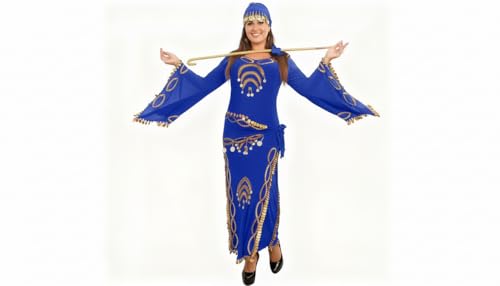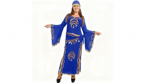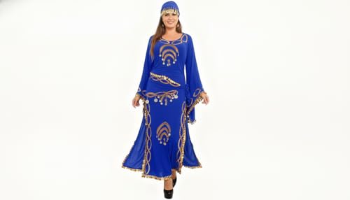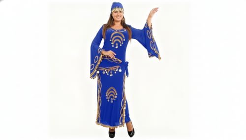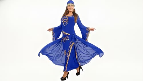 JAZZEEL - JAZZEEL Belly Dance Dress, Stretch Fabric with Bell Sleeves, Gold Coins Embellishment, Hip Scarf Tie, One Piece for Performances and Home Events