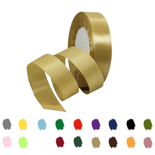 JAZZEEL - بكرة شريط ساتان بلون ذهبي فاتح من جازيل، قماش بوليستر بسمك 20 ملم × 22 متر للحرف اليدوية وتزيين الكيك وربطات الشعر وزينة الكريسماس الأنيقة وديكور سيارة الزفاف