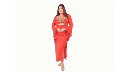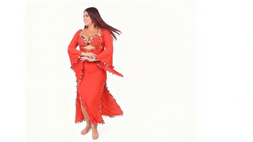 JAZZEEL - JAZZEEL Coin Trim Galabeya Dress, Stretch Fabric with Colorful Sequin Bra Design and Side Slits, One Piece Home Wear and Party Outfit for Women, Elegant Design for Occasions and Shows