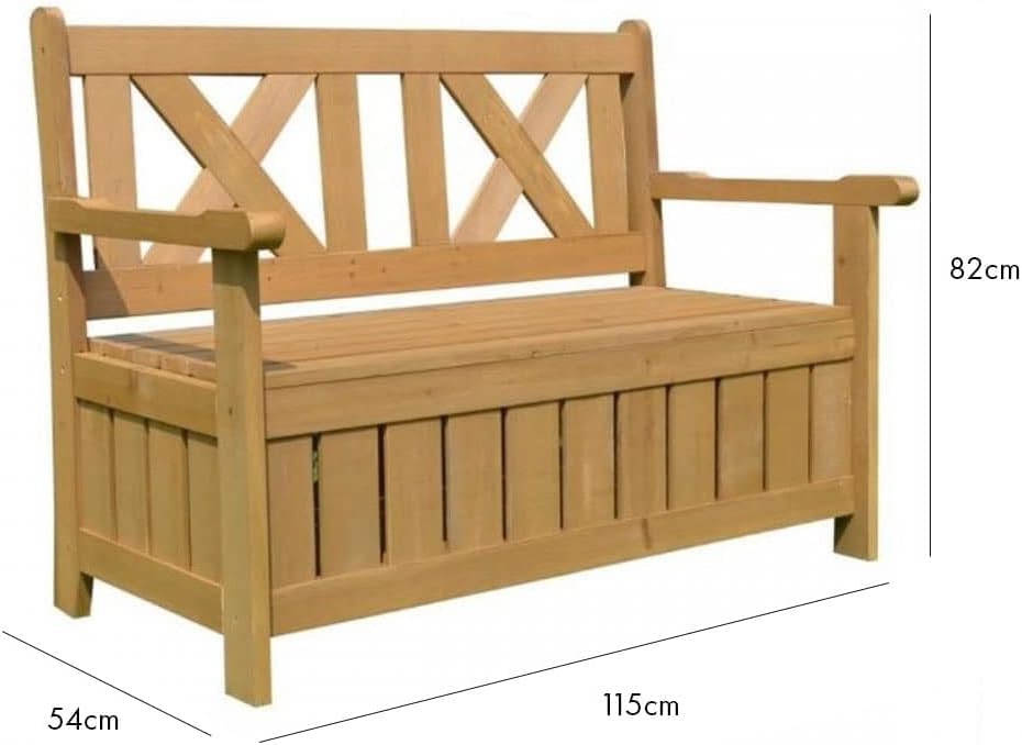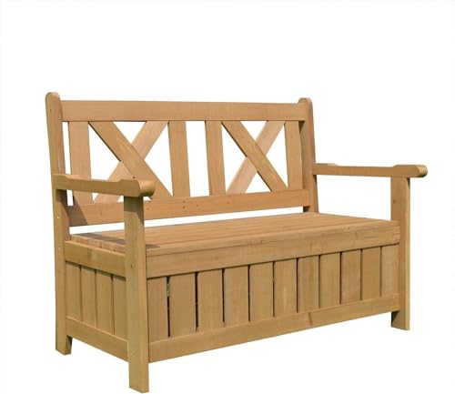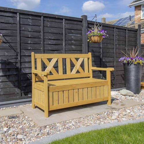 JAZZEEL - JAZZEEL Darcy Wooden 2 Seater Garden Storage Bench, Outdoor Showerproof Loveseat with Built-In 110Ltr Waterproof Storage Box, Treated Fir Wood Patio Furniture with Arms