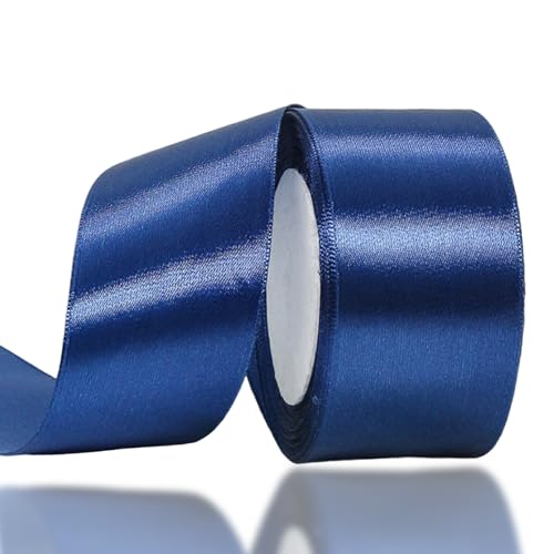 JAZZEEL - JAZZEEL Dark Blue Wide Satin Ribbon, 50mm x 22m Thick Polyester Fabric for Crafting, Cake Decoration, Hair Bows, Christmas Decor, and Luxury Wedding Car Ribbon Decoration