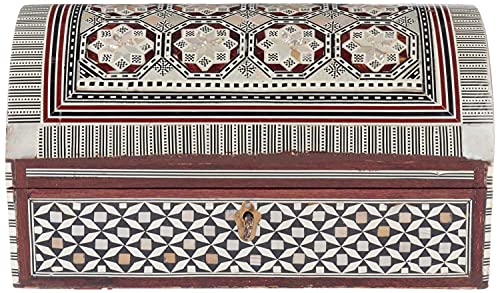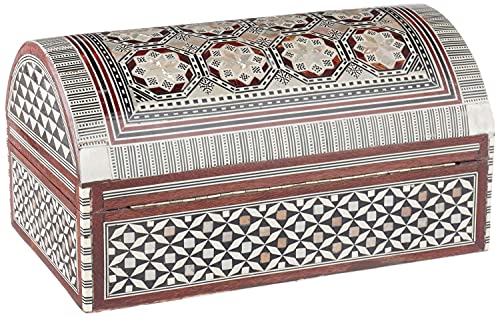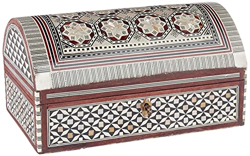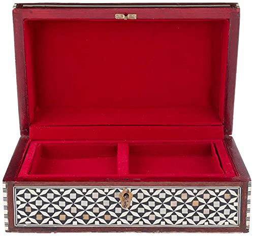 JAZZEEL - JAZZEEL Decorative Wood and Seashell Jewelry Box 25 cm Handcrafted Keepsake Storage Organizer with Intricate Inlay Design for Trinkets and Treasures Multi Color Rectangular Chest