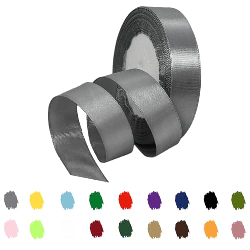 JAZZEEL - بكرة شريط ساتان رمادي من جازيل، قماش بوليستر بسمك 20 ملم × 22 متر للحرف اليدوية وتزيين الكيك وربطات الشعر وتزيين الكريسماس وديكور سيارة الزفاف وتغليف الهدايا الانيق