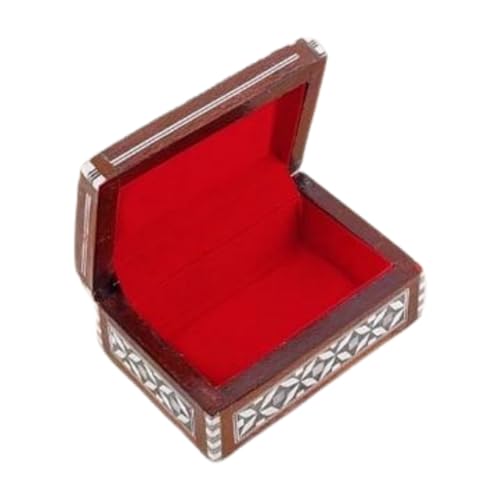 JAZZEEL - JAZZEEL Handcrafted Wooden Jewelry Box with Genuine Mother of Pearl Shell Inlay Artisan Keepsake Storage Organizer for Rings Necklaces Trinkets Decorative Gift Box (Rectangular, 16 x 10 cm)