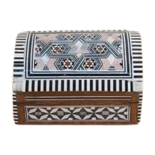 - GENUINE MOTHER OF PEARL: The lid is hand-inlaid with authentic mother of pearl, creating a beautiful, iridescent design that is unique to each box.