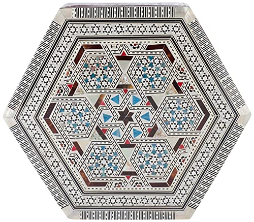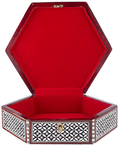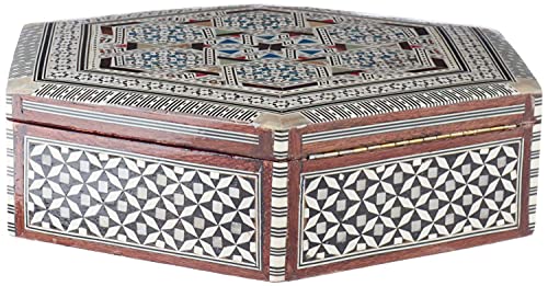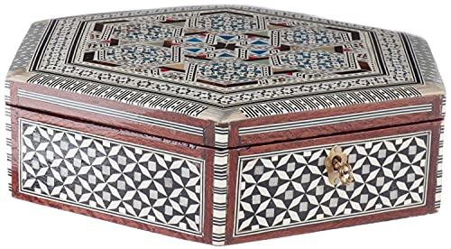 JAZZEEL - JAZZEEL Hexagon-Shaped Wood and Seashell Jewelry Box - A Large 25cm Multi-Color Keepsake Box with Natural Shell Inlay, an Artistic and Spacious Storage Solution for Valuables
