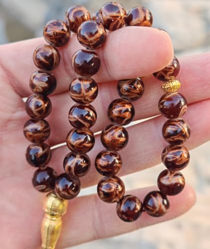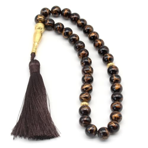 JAZZEEL - JAZZEEL Islamic Prayer Beads Tasbih with 33 Beads 10mm Black Muslim Misbaha with Arabic Tassel for Dhikr Zikr Worry Beads Prayer Counter Bracelet for Men Women Sibha Masbaha