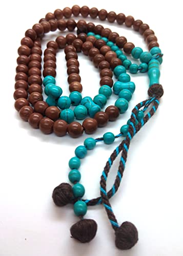 JAZZEEL - JAZZEEL Koka Wood Rosary with Natural Turquoise 100 Beads and 2 Counters for African Style Prayer Tasbih for Men Women Misbaha Sibha for Dhikr Meditation Spiritual Muslim Gift