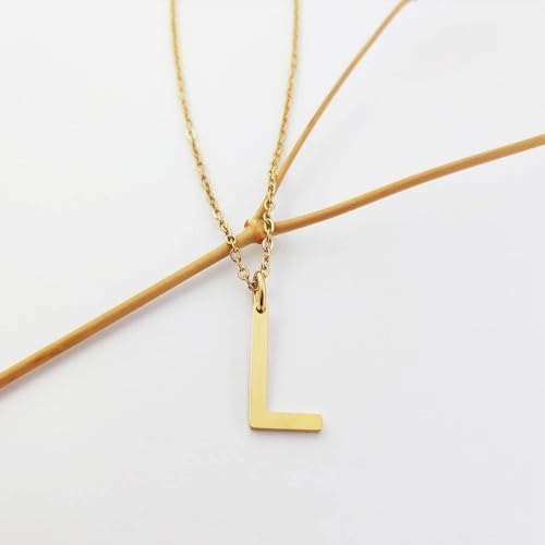 JAZZEEL - JAZZEEL Letter Necklace, Personalized Pendant with Alphabet Charm, Gold Color Stainless Steel Necklace for Women, Long Chain Elegant Jewelry for Daily Wear, Birthday, or Anniversary Gift
