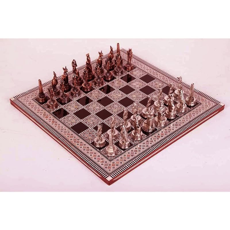 JAZZEEL - JAZZEEL Luxurious Pharaonic Chess Set with Distinctive Metal Pieces and a Unique Board Presented in an Elegant Red Velvet Box for Premium Storage - 1 Piece
