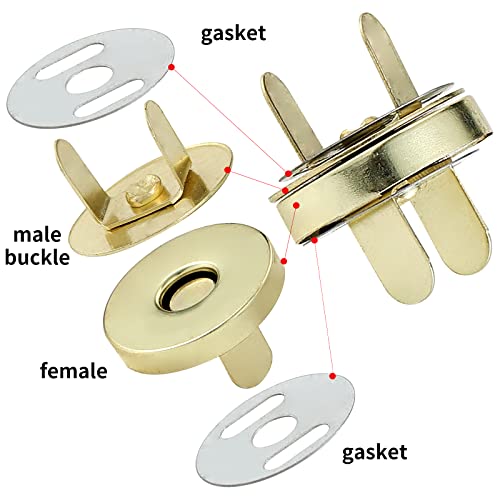 JAZZEEL - JAZZEEL Magnetic Button Clasps, 50 Sets of 14mm Snap Closures for Purses, Bags, and Clothing, Gold Color, Easy to Sew Fasteners for Handmade Crafts, Leatherworking, and DIY Bag Making