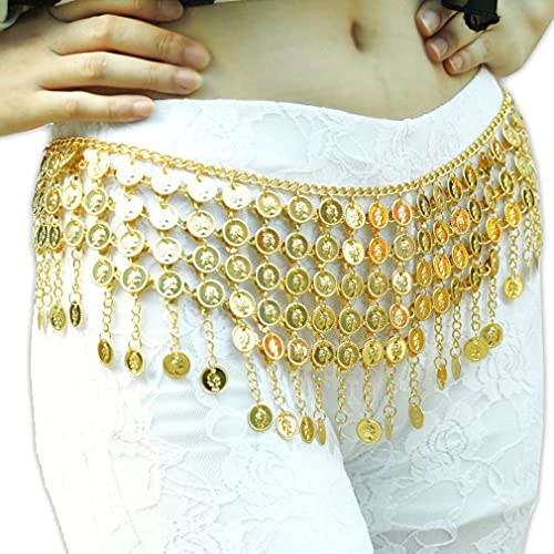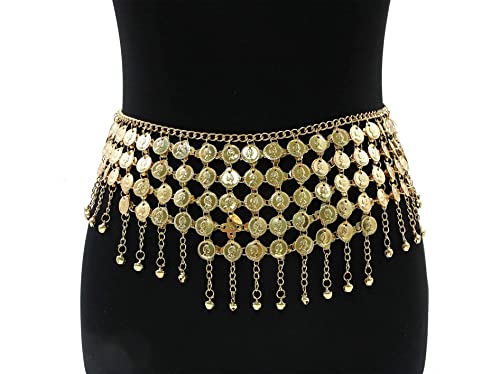 JAZZEEL - JAZZEEL Metal Belly Dance Hip Scarf Belt with Tower Shape Design, Gold, One Size, Professional Women's Costume Accessory for Tribal or Fusion Dance Performance
