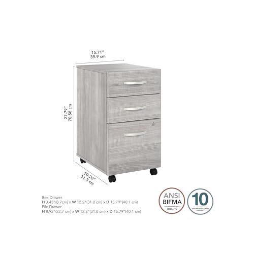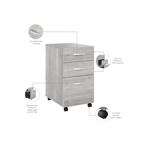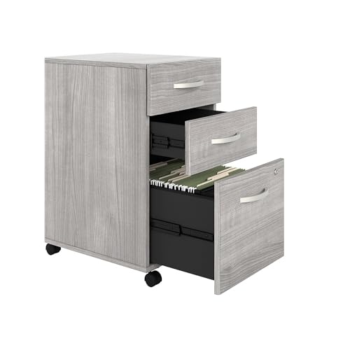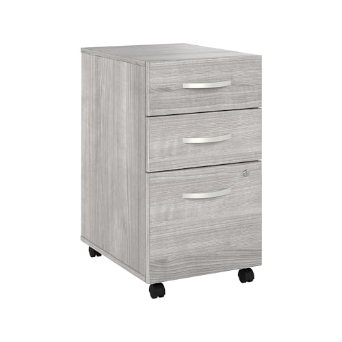 JAZZEEL - خزانة ملفات متحركة من جازيل، 3 ادراج تخزين على عجلات، حجم قياسي، رمادي بلاتينيوم، منظم مكتب احترافي للوثائق، اثاث خشبي متين، تجاري شديد التحمل.