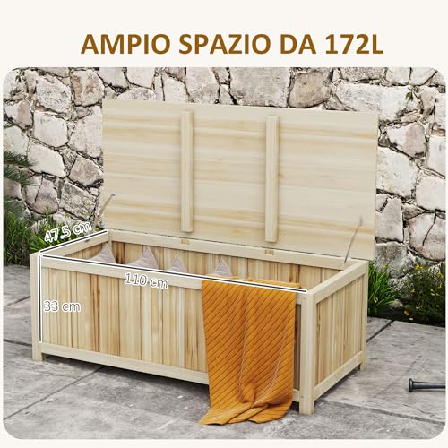 JAZZEEL - JAZZEEL Outdoor Storage Box with 172L Capacity – Fir Wood Chest with Bench Seating for Garden, Balcony & Patio Organization, Weather-Resistant Natural Wood 120x55x45 cm