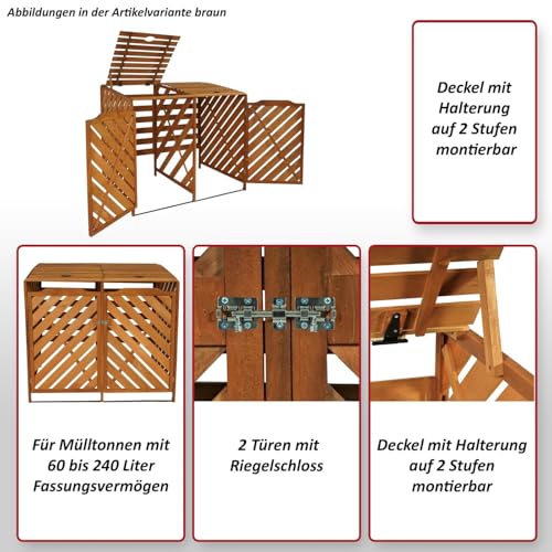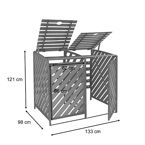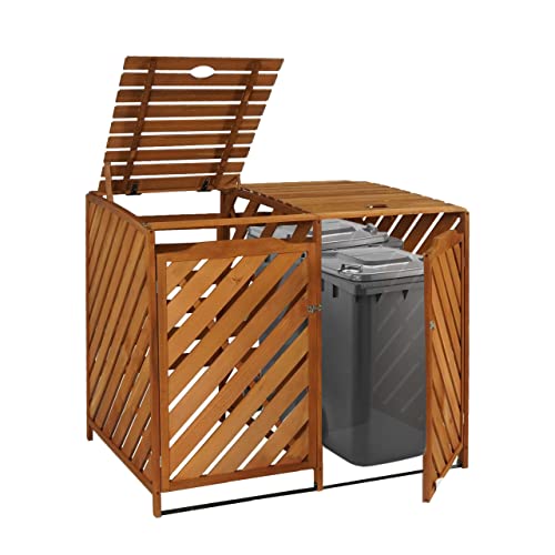 JAZZEEL - صندوق تخزين خارجي بتصميم خشبي لتغطية صناديق القمامة قابل للتمديد يتسع من 2 إلى 4 صناديق من جازييل بمقاس 112×63×96 سم