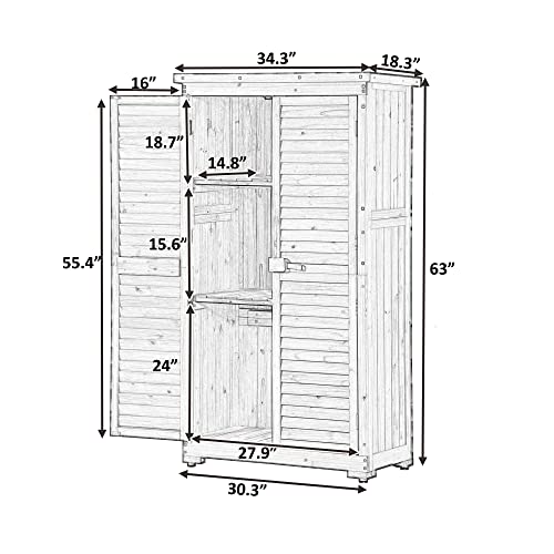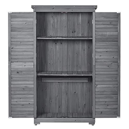 JAZZEEL - سقيفة تخزين خشبية للأماكن الخارجية من جازيل، خزانة حديقة الفناء من 3 طبقات مع سقف مقاوم للماء، أرفف قابلة للإزالة وبابين قابلين للقفل، منظم أدوات للفناء الخلفي، رمادي