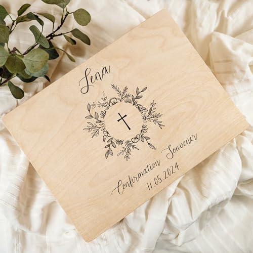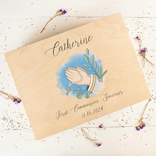 JAZZEEL - JAZZEEL Personalised Wooden First Holy Communion Gift Box, A Custom Keepsake Box for Girls or Boys with Hinged Lid, A Unique and Decorative Memory Chest for A Special Day