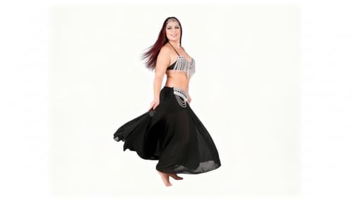 JAZZEEL - JAZZEEL Professional Belly Dance Costume Set, 2-Piece Sequin Bra and Hip Belt with Silver Fringe, Flowing Split Skirt for Stage Performance, Elegant Raqs Sharqi Oriental Dance Outfit