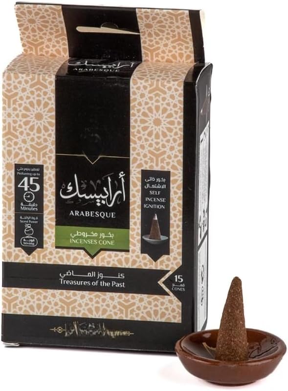 JAZZEEL - JAZZEEL Pyramid Incense Cones, Arabesque Fragrance, 15 Cones, Self Igniting Bakhoor for Indoor Use