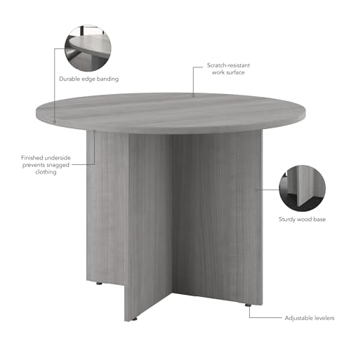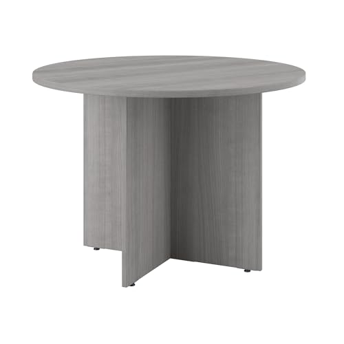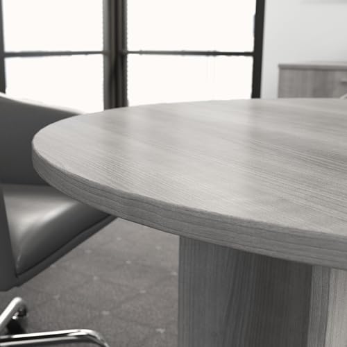 JAZZEEL - JAZZEEL Round Conference Table, Wood Base Meeting Desk, 107 cm, Platinum Gray, Professional Office Furniture for Boardroom Collaboration, Durable Work Surface, Heavy Duty Commercial.
