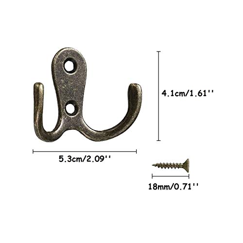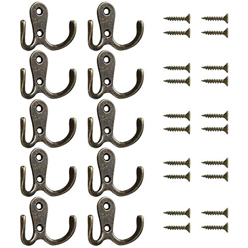 JAZZEEL - خطافات معاطف برونزية عتيقة مزدوجة وصغيرة لتعليق المعاطف والملابس والأرواب والفوط والشنط والطواقي تثبت على الحائط من جزيل من 10 قطع