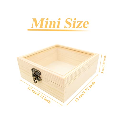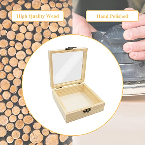 JAZZEEL - JAZZEEL Small Wood Jewelry Box with Clear Glass Lid, 12x12x5 cm Wooden Storage Box for Storing Rings, Flowers, Snacks, and Small Items, Elegant Display Case for Trinkets & Keepsakes