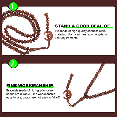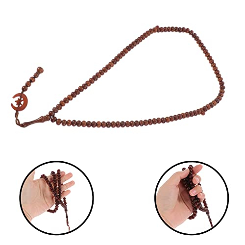 JAZZEEL - JAZZEEL String Rosary Necklace in Brown - A Wooden Muslim Prayer Bead Ornament (Tasbeeh) for Ramadan, a Lightweight Sibha Worship Chain for Handheld Dhikr and Accessories