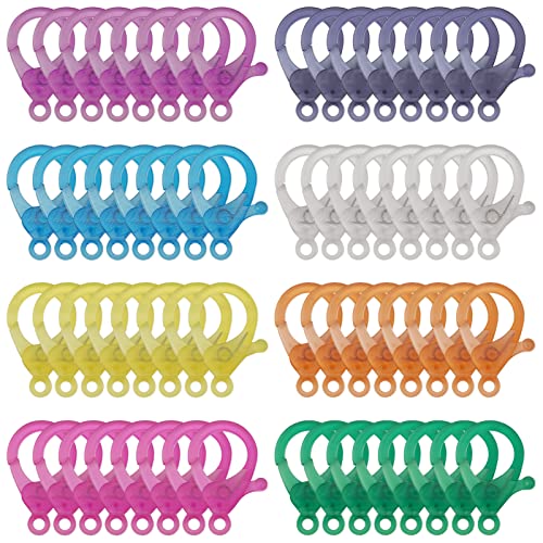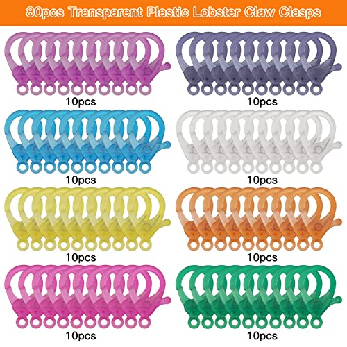 - 80-PIECE MULTICOLOR SET: This kit includes plastic lobster claw clasps in 8 different transparent colors, adding a fun, playful touch to your craft projects.